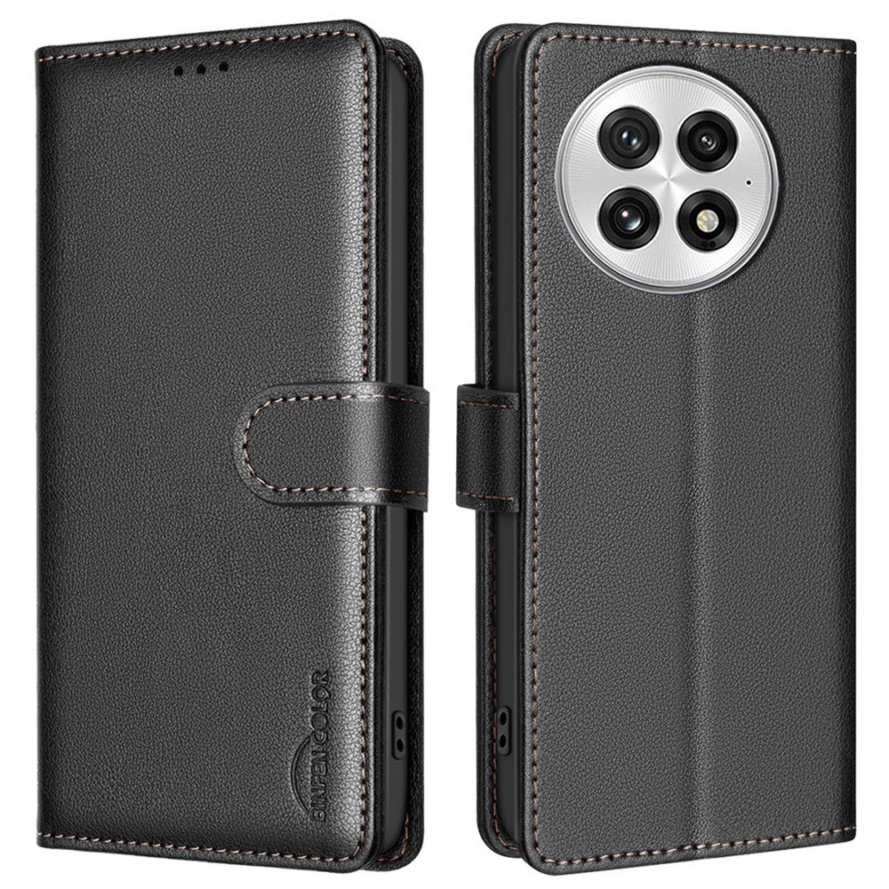 for iPhone 15 Plus , Anti-scratch Leather Calf Texture Stand Flip Cover – Black