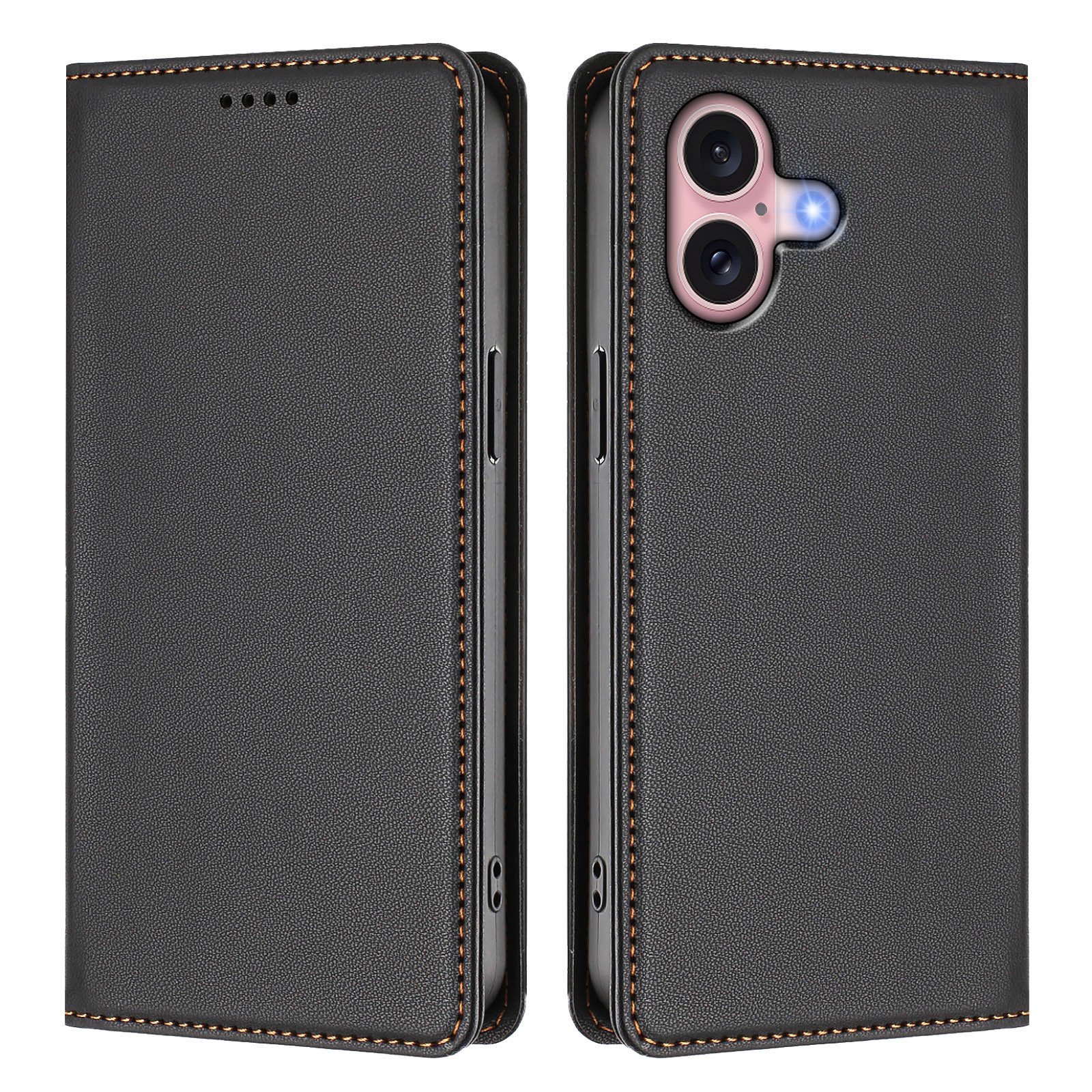 iPhone 16 Leather Wallet Case - Black