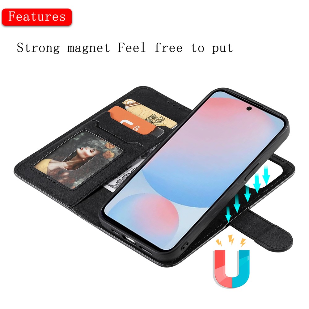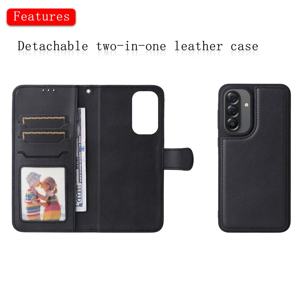 Samsung Galaxy A56 5G / A36 5G Case 2 in 1 Detachable Magnetic Leather Wallet Mobile Cover with Strap - Black