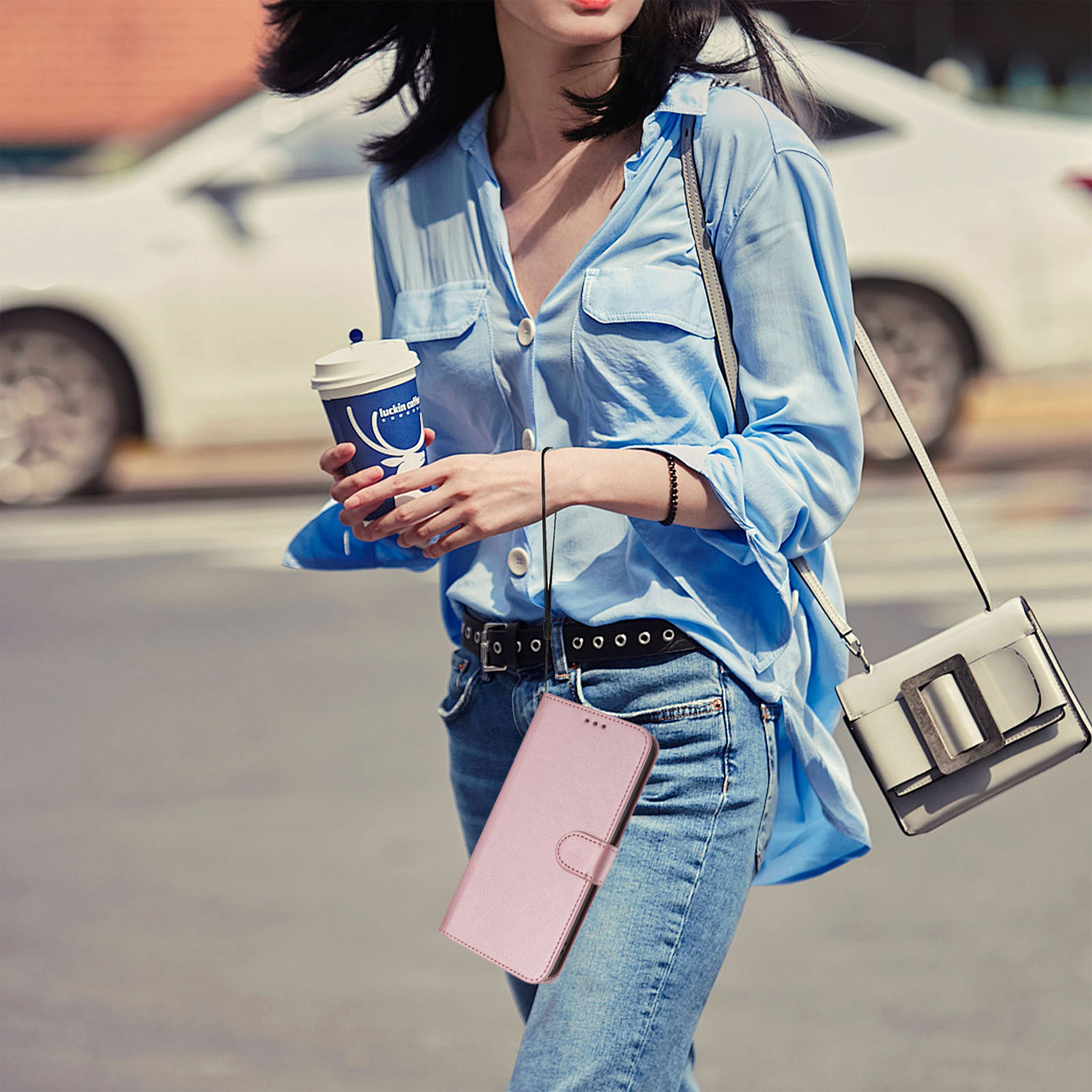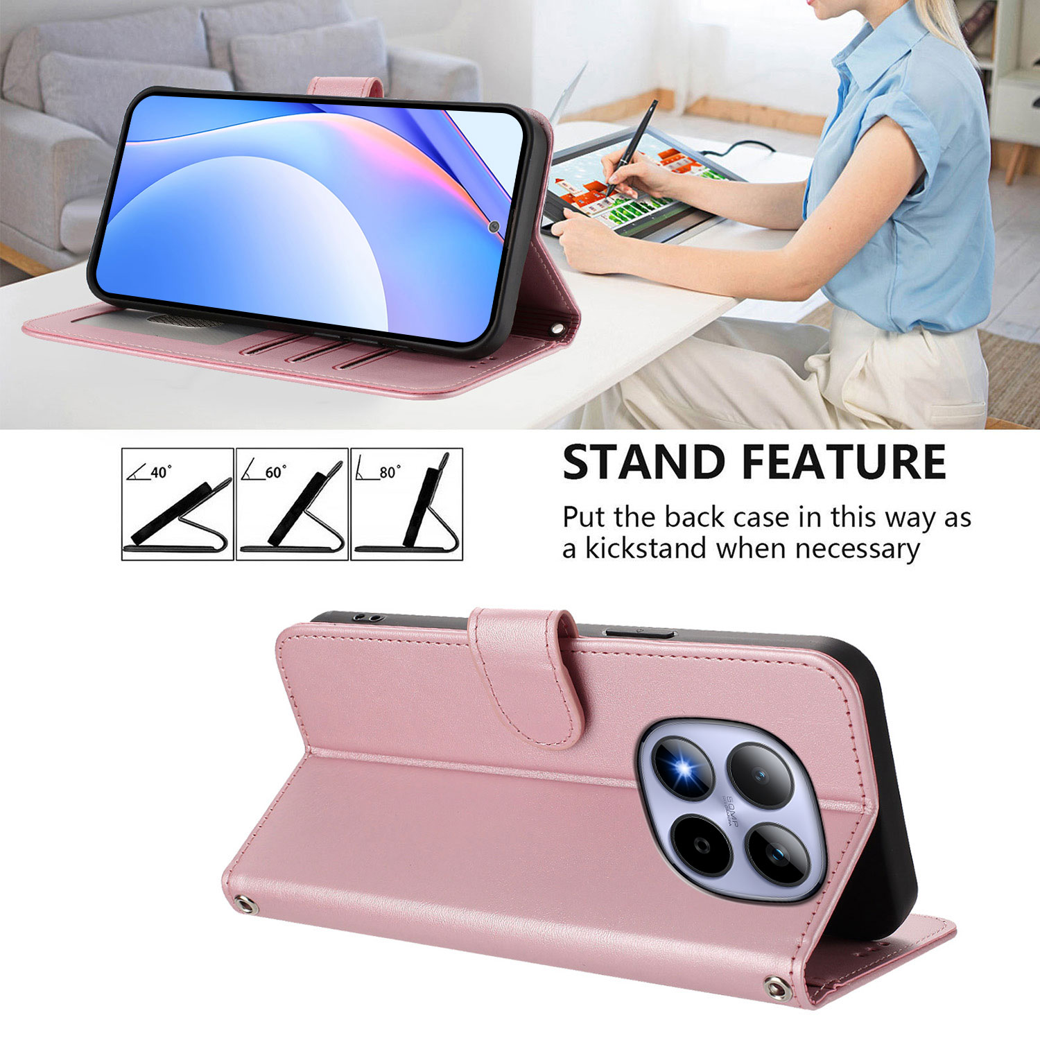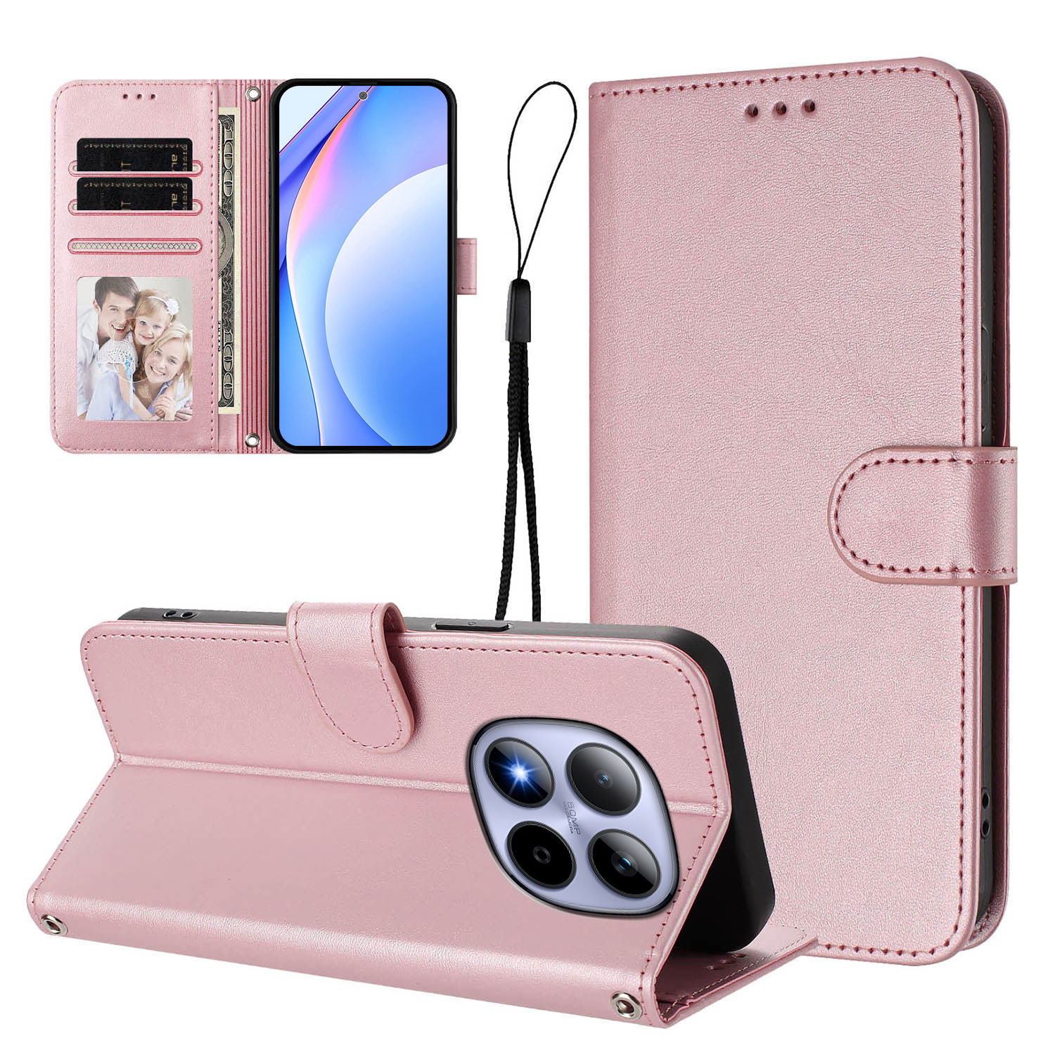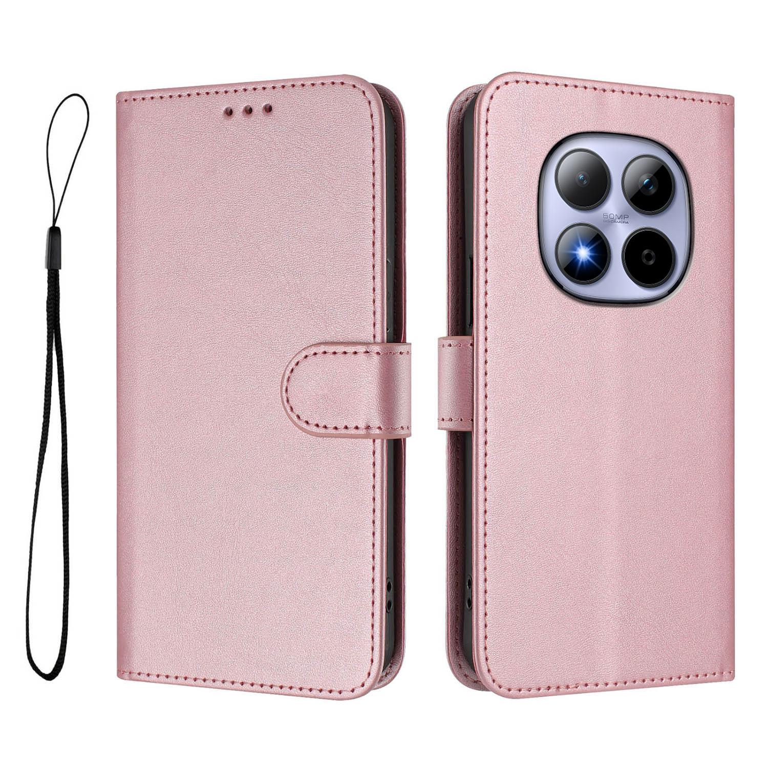 For Xiaomi Redmi Note 15 Pro 5G (Global) Wallet Case RFID Blocking Calf Texture Leather Stand Phone Cover with Strap - Pink