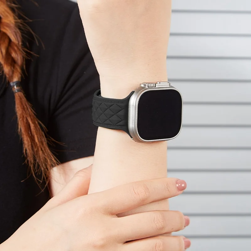 Silicone Band for Apple Watch Series 11 10 42mm / 9 8 7 41mm / SE3 SE2 SE 6 5 4 40mm / 3 2 1 38mm Rhombus Design Watch Strap - Black